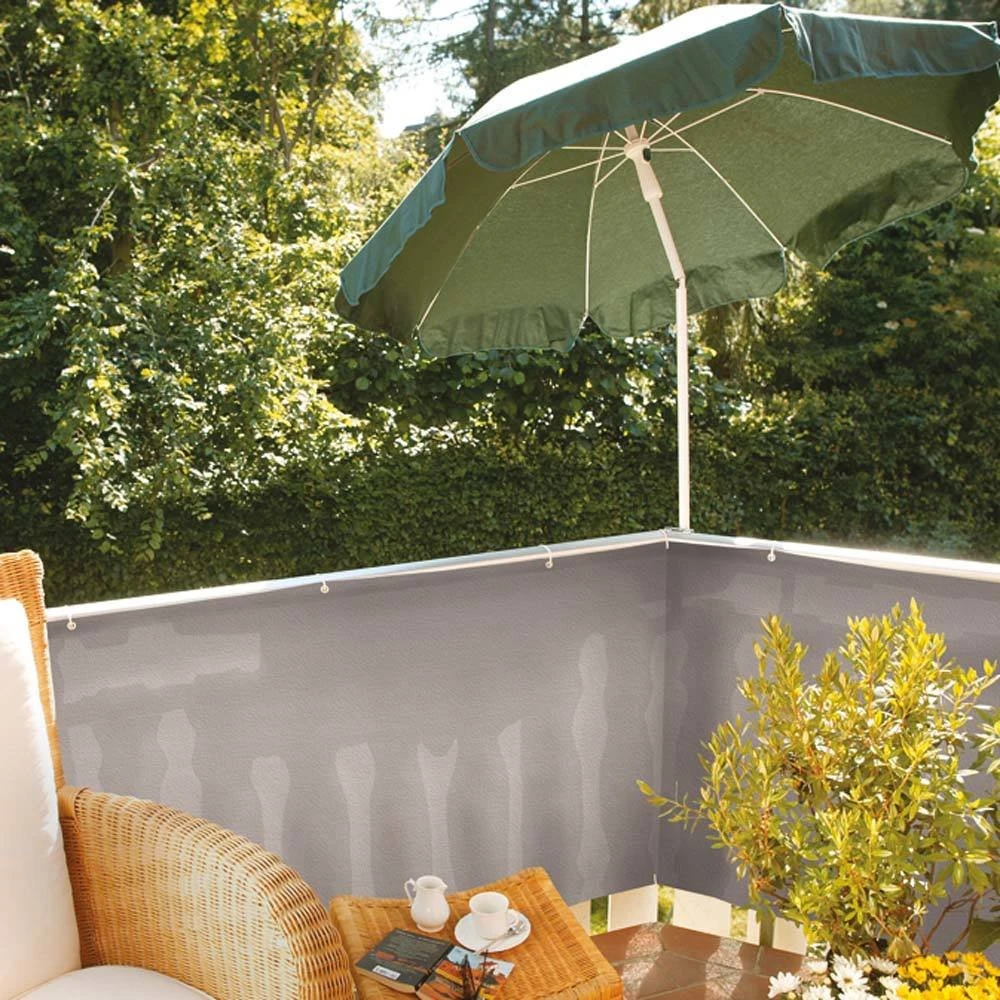 Diese Balkonbespannung ist ein echter Allrounder: Sie bietet Schutz vor Sonne, Wind sowie neugierigen Blicken. Zudem schafft sie ein gemütliches Ambiente und verschönert Ihren Balkon auf elegante Art und Weiße. Befestigt wird sie mit praktischen Haken an dem Balkongitter. Das Material ist sehr robust und hält durch die Reißfestigkeit auch großen Belastungen stand. Außerdem ist die Balkonbespannung UV-stabil.