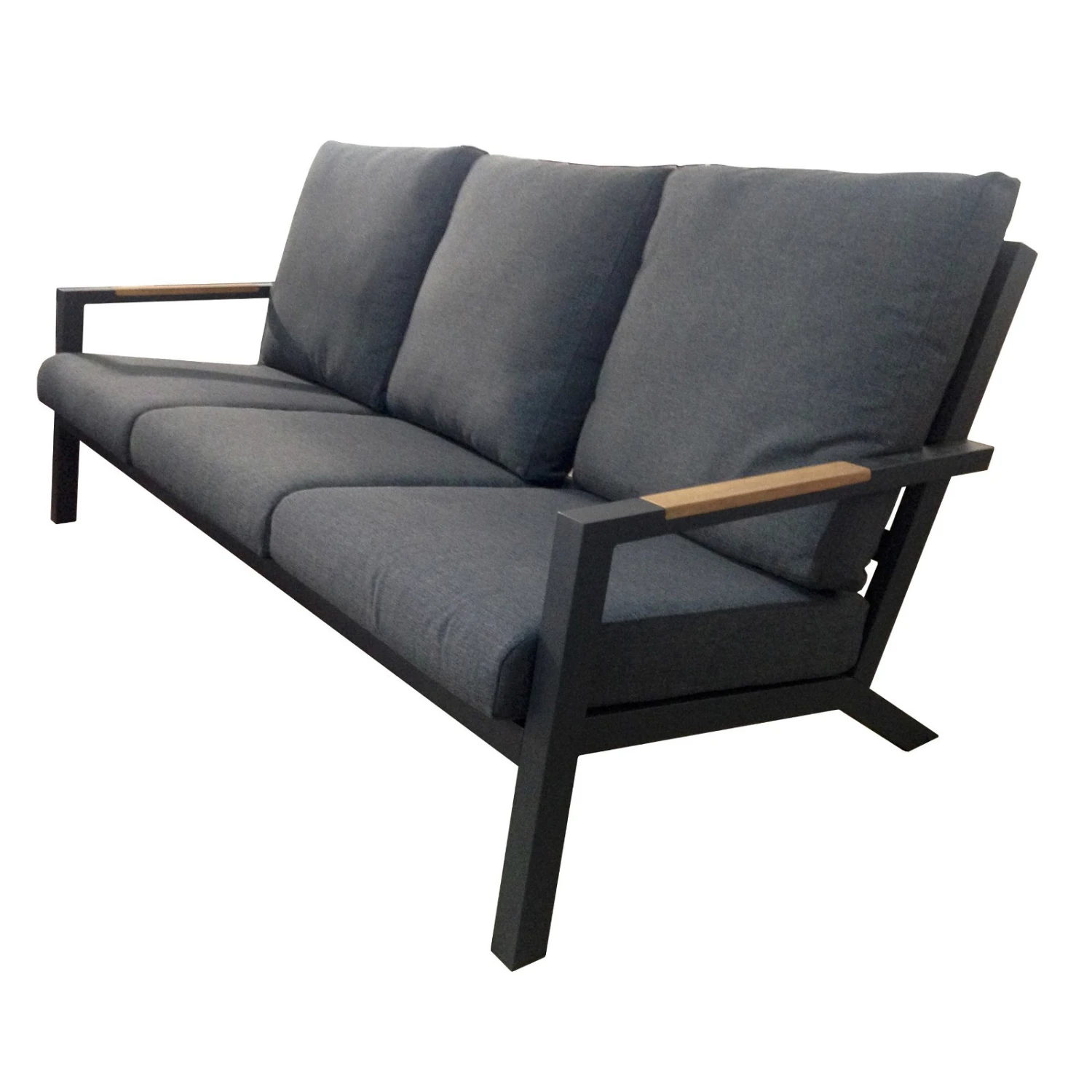Nehmen Sie künftig bequem im Freien Platz – auf der schicken Bank „Australien“, die Ihnen das Loungeflair direkt in den Garten oder auf die Terrasse bringt. Die vielseitige Sitzbank in anthrazit punktet einerseits mit ihrer Funktionalität, denn sie bietet Platz für bis zu drei Personen und zeigt sich für den dauerhaften Einsatz im Freien geeignet. Lediglich während der Frostzeit sollten Sie das Sitzmöbel ins Haus holen, um seine Qualität zu erhalten. Andererseits kann die Optik der Sitzbank auf ganzer Linie überzeugen. Das dunkle Aluminiumgestell befindet sich im Einklang mit der mitgelieferten Polyester-Auflage und verleiht der Bank ein modernes Flair. Die Sitzbank ist anthrazit und somit sehr elegant – eine perfekte Alternative zur Sitzbank für den Garten aus Holz! Gestalten Sie Ihr Gartenambiente etwas moderner als die Nachbarn und sichern Sie sich neidische Blicke. Passend zu Beistelltisch und Hocker der gleichen Serie unserer bewährten Marke Kölle, ist die Bank im Garten, auf dem Balkon oder unter einem Pavillon ein echter Blickfang.