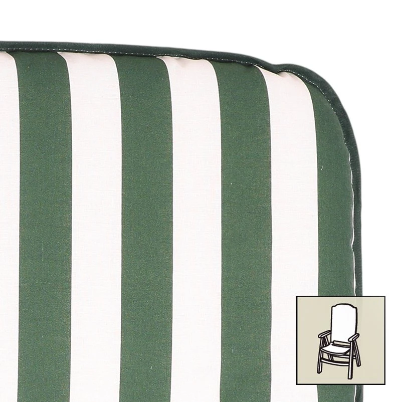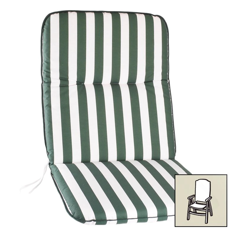 Marken-Auflagen aus dem Hause Best: Mit der grün/weißen Hochlehnerauflage werden Ihre Gartenstühle und Sessel gleich doppelt bequem. Die hochwertige Auflage besteht aus einem 6 cm starken Schaumstoffkern mit thermisch verfestigter Vliesumhüllung, ummantelt von einem Bezug aus strapazierfähiger, 100 % Baumwolle.