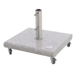 Dieser rund 50 Kilogramm schwere Granitsockel verleiht Ihrem Sonnenschirm von Knirps einen festen Stand. Besonders praktisch: In den Sonnenschirmsockel sind Rollen integriert, sodass Ihr Schattenspender mobil bleibt. Denken Sie daran, bei Starkwind den Sonnenschirm immer zu schließen, um Unfälle zu vermeiden.