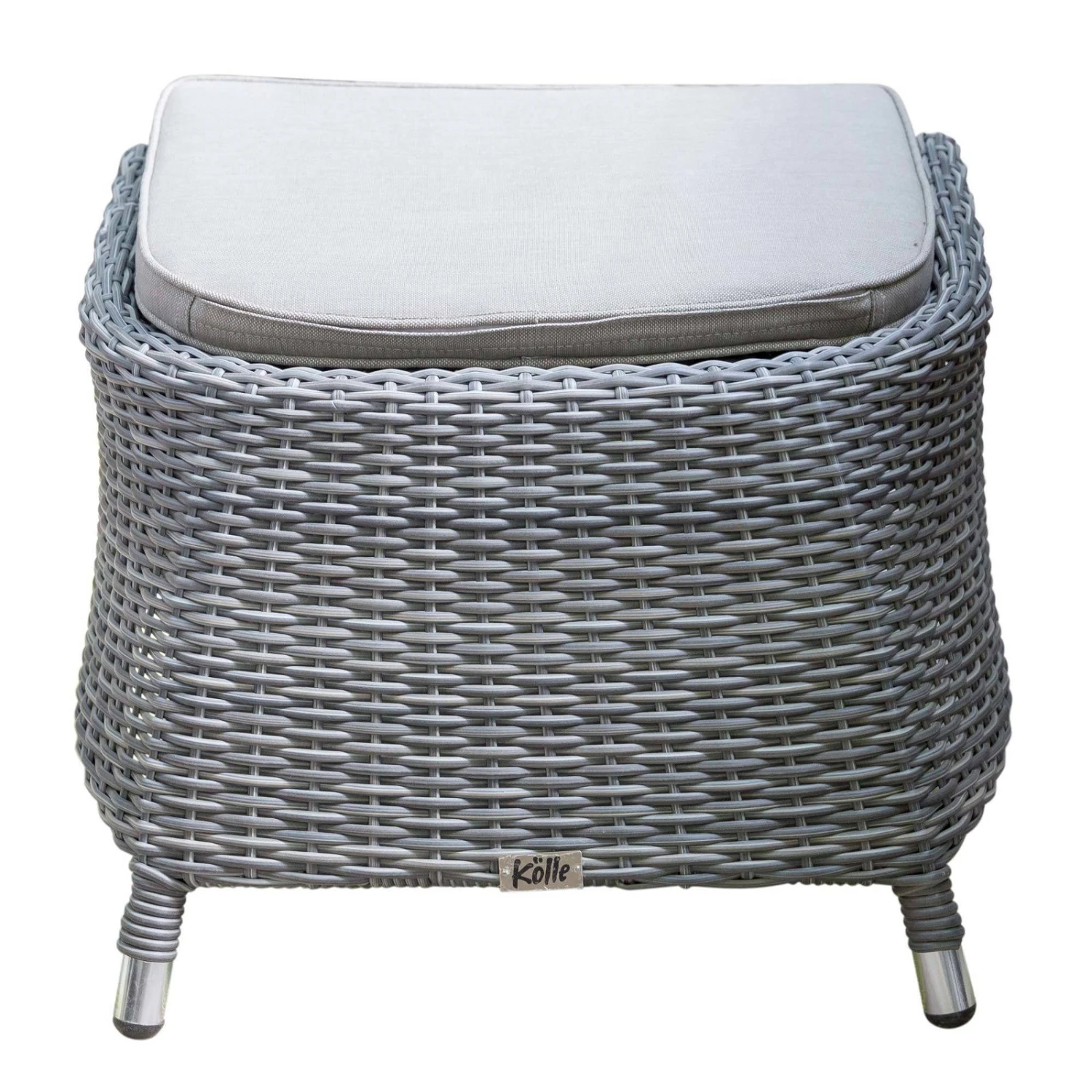 Mit diesem kleinen Allrounder wird die heimische Terrasse gezielt aufgewertet: Der strapazierfähige Kölle Hocker „Colorado“ ist bestens für den Außeneinsatz geeignet. Möglich wird das durch die Verwendung eines robusten Geflechts aus Polyrattan. Aufgebracht ist dieses auf ein Gestell aus Aluminium. Das macht ihn pflegeleicht und winterfest bis ca. -20 °C. Nutzen kann man ihn im Innen- wie Außenbereich als Fußablage, Sitzgelegenheit oder als praktischen Beistelltisch. Aber auch optisch weiß der Beistellhocker zu überzeugen: Das feine Geflecht und die Kombination mit Metall machen ihn zum modernen Blickfang. Sieht toll aus und erweist sich als vielseitig: der strapazierfähige Kölle Hocker „Colorado“.