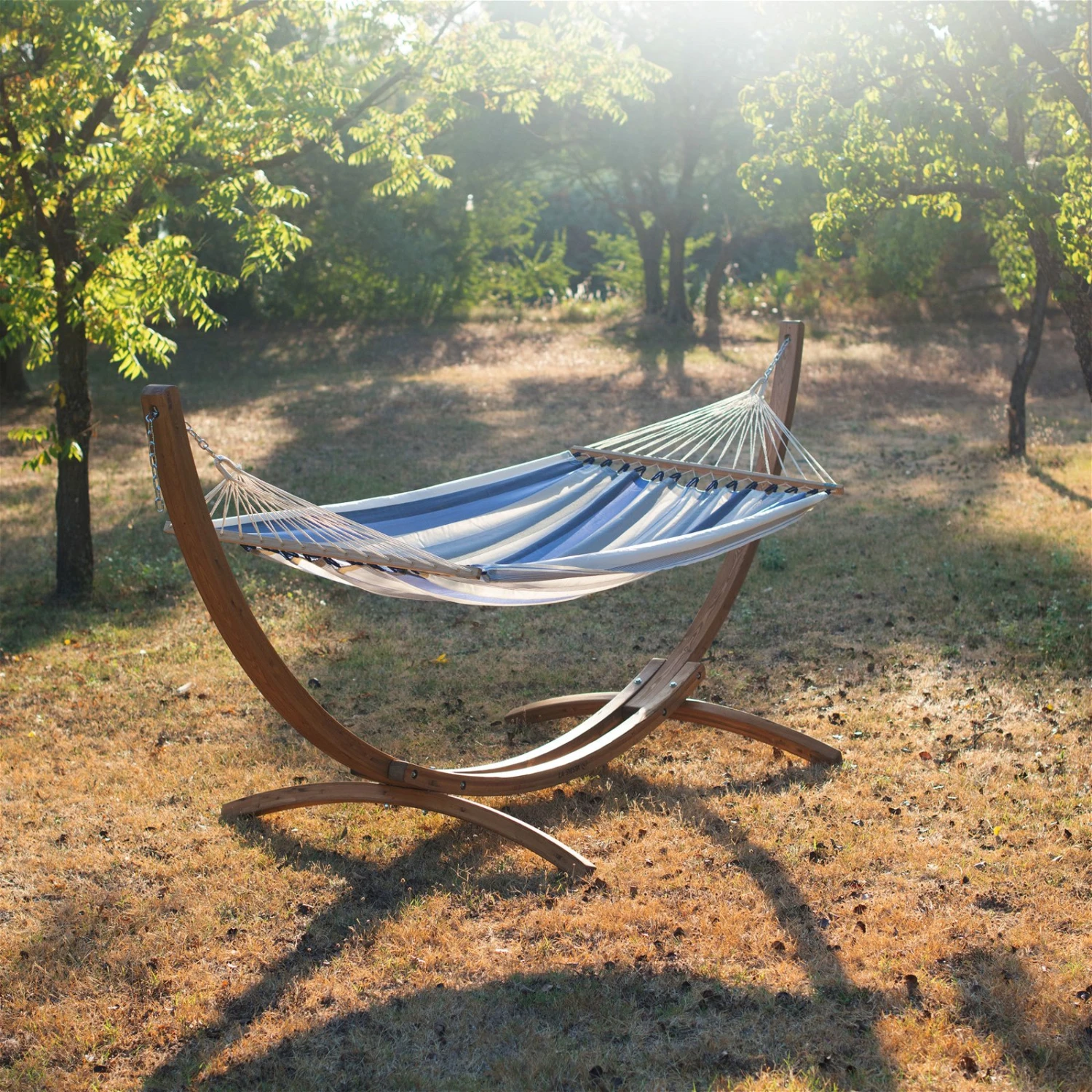 In der Doppel-Hängematte Alisio von La Siesta lässt es sich perfekt zu zweit oder allein abhängen. Die Stab-Hängematte sorgt für ein offenes Komfortgefühl.. Spannen Sie die Hängematte Alisio zwischen zwei Bäumen oder nutzen Sie ein spezielles Gestell. Sie profitieren zusätzlich von der outdoortauglichen, pflegeleichten und robuster Kunststofffaser.