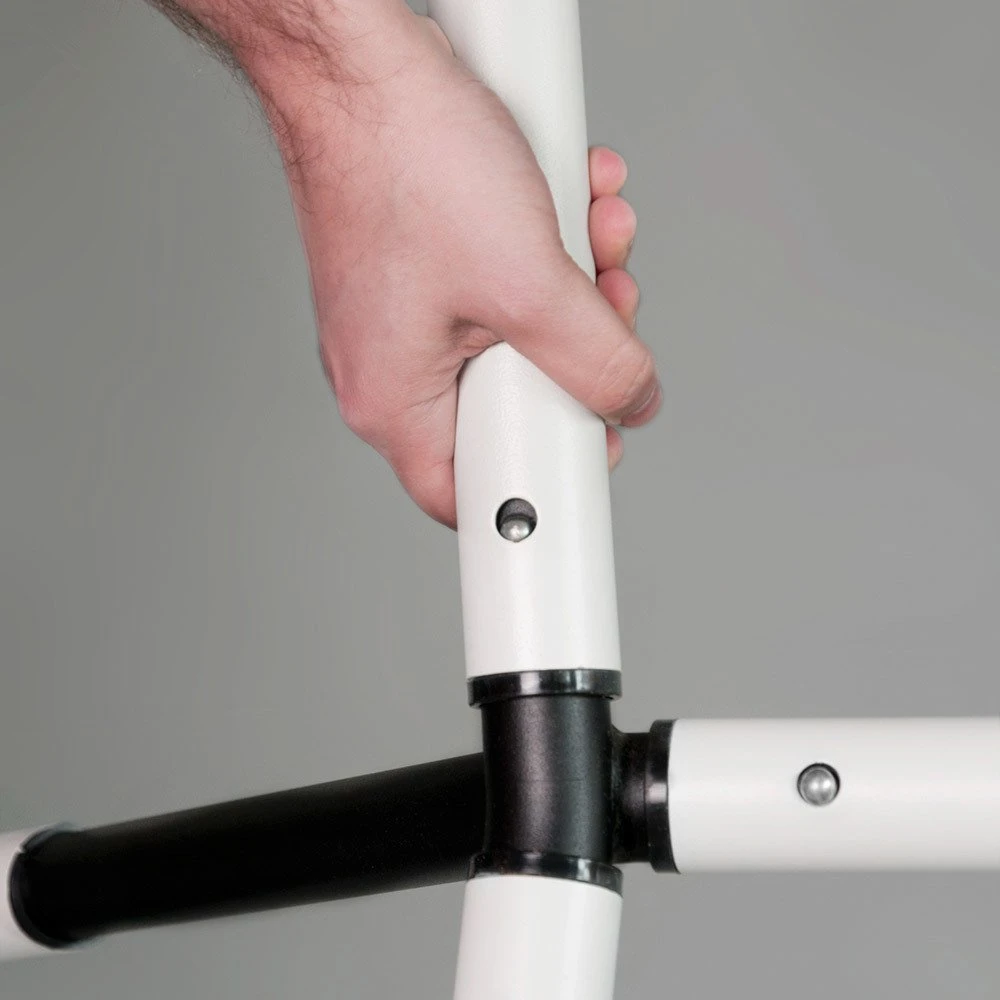 Dank des PlugTube-Systems – einfach Rohre zusammenstecken, bis sie einrasten – geht der Auf- und Abbau des Gestells für Ihre Hängematte im Handumdrehen.