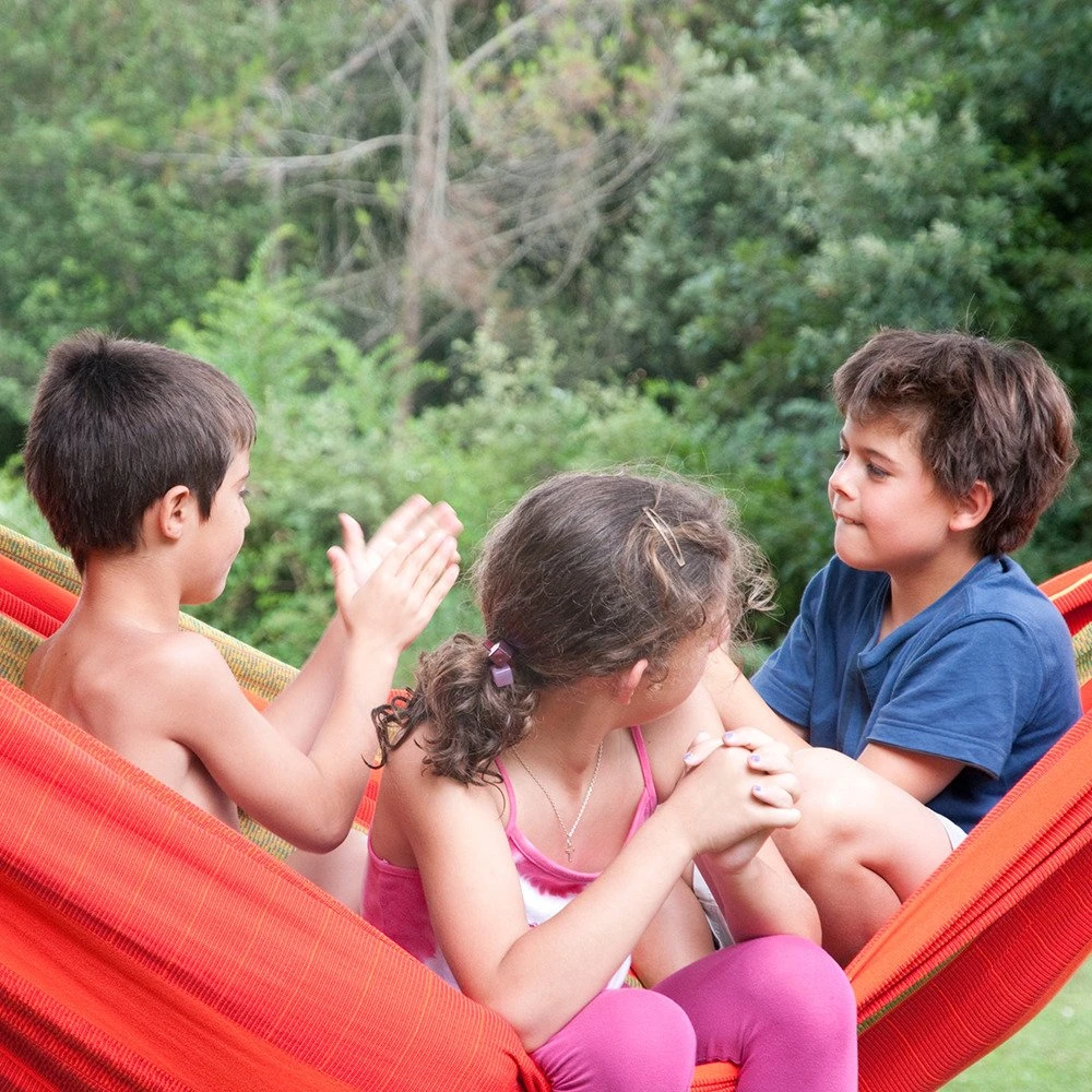 Die Kingsize-Hängematte Flora in chilirot wartet mit einem besonderen Liegekomfort für die ganze Familie auf. Freuen Sie sich auf eine extra breite Liegefläche und eine maximale Belastbarkeit von 200 kg.