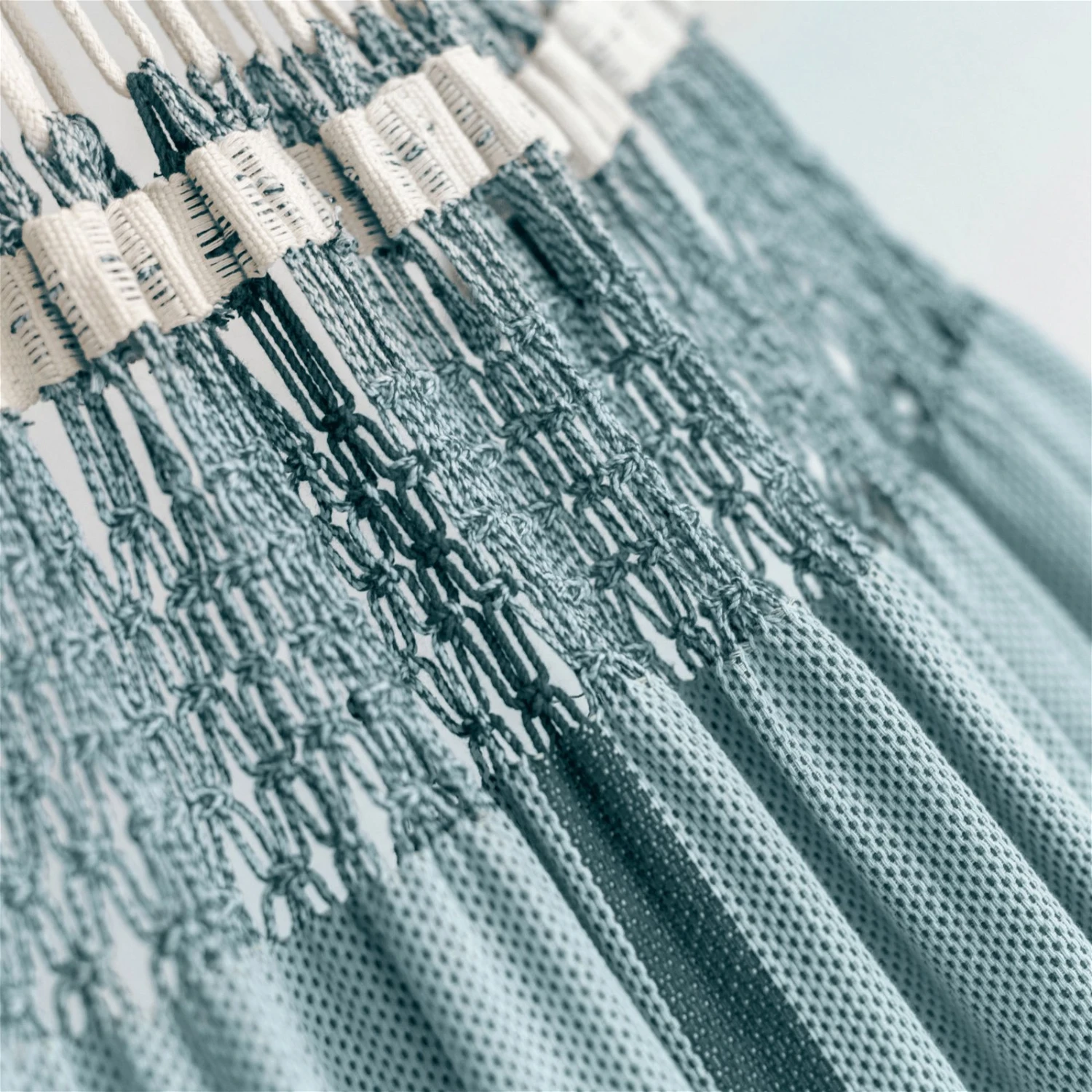 Ihre Kinder werden die blau-beige Kingsize Hängematte ‚Bossanova‘ lieben, da sie für die ganze Familie geeignet ist. Relaxen Sie gemeinsam! Die Hängematte hat eine Größe von 180 x 400 x 180 cm und eine maximale Belastbarkeit von 200 kg. Ihre hohe Stabilität bekommt sie durch Bio-Baumwolle und reißfeste Webkanten.