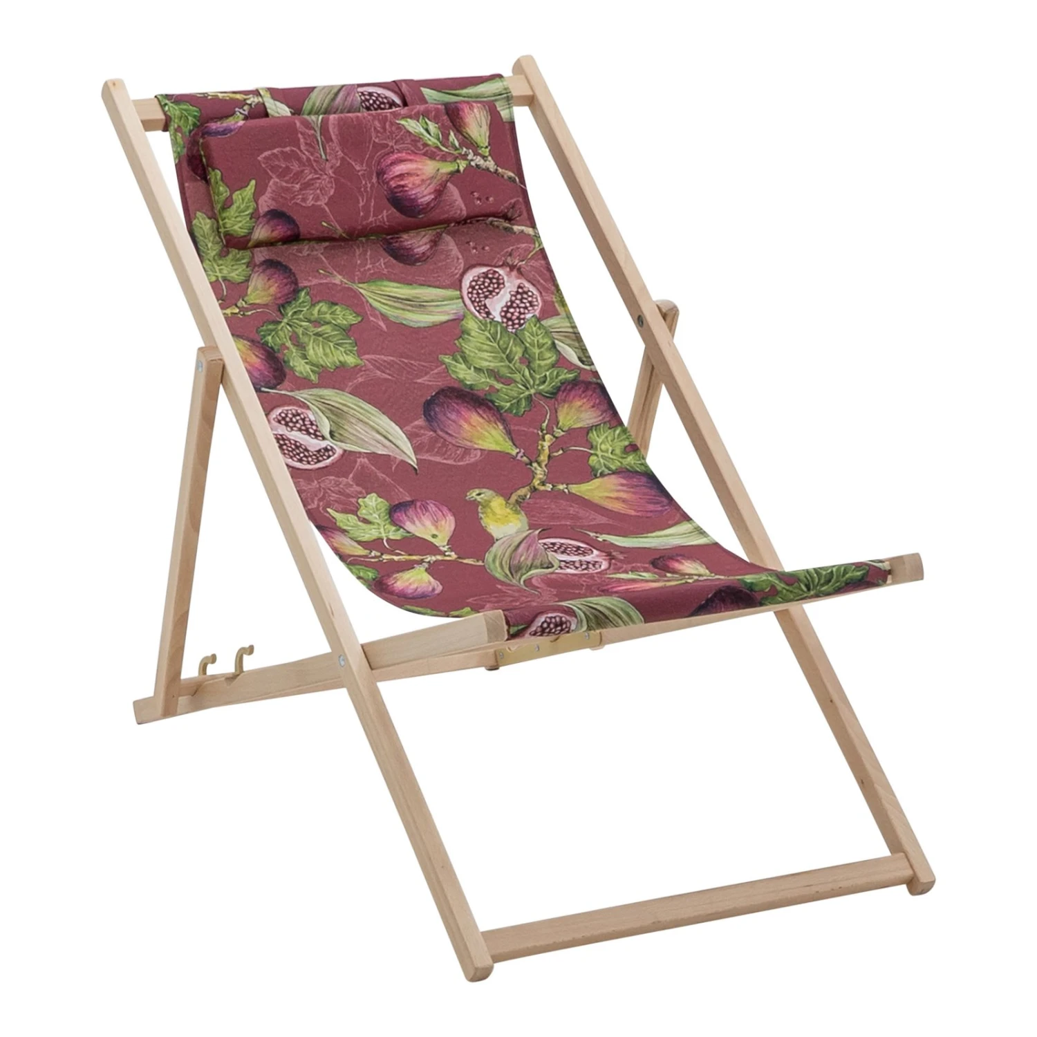 Genießen Sie wohlig warme Sommertage in diesem komfortablen Strandstuhl. Der Liegestuhl ‚Jasmijn‘ von Madison besticht durch einen stabilen Rahmen und durch belastbares, wasserabweisendes Textilgebe mit charmantem botanischem Motiv. Ein weich gepolstertes Kopfkissen sorgt für noch mehr Komfort. Der Strandstuhl überzeugt mit geringem Eigengewicht und eignet sich für Dauereinsatz draußen.