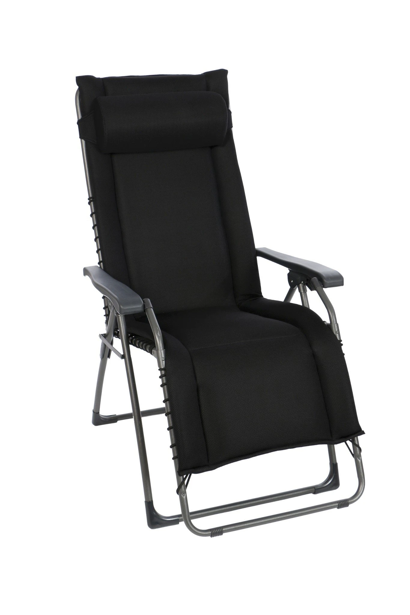 Der herrlich bequeme Bezugsstoff sowie die Bespannung mit elastischen Gummischnüren schmiegen sich hervorragend an Ihren Körper an und sorgen für himmlisch weichen Sitzkomfort. Der Relaxsessel „Daydreamer XL“ besteht aus anthrazitfarbenem, pulverbeschichtetem Stahlrohrgestell und schwarzem Mesh-Gewebe. Armlehnen aus Kunststoff erhöhen den Sitzkomfort zusätzlich. Mit einer Sitzfläche von 120 cm und einer Sitzbreite von 67 cm bietet dieser Sessel viel Platz zum Entspannen. Durch das senkrecht stellbare Fußteil kann der Relaxsessel auch als Stuhl verwendet werden. Für traumhaftes Sitzvernügen sorgen außerdem die verschieden einstellbaren Sitzpositionen, die jeweils fest arretiert werden können.