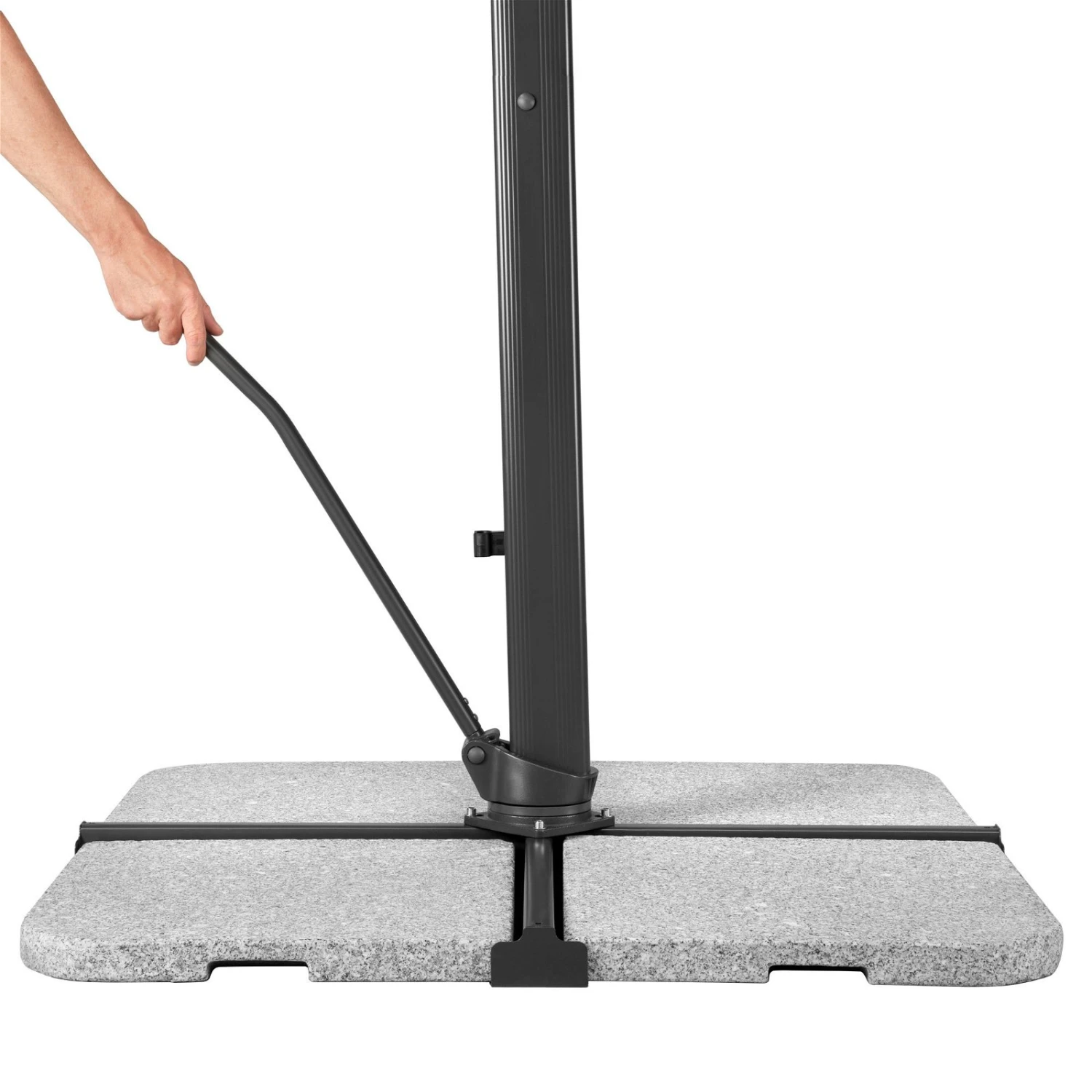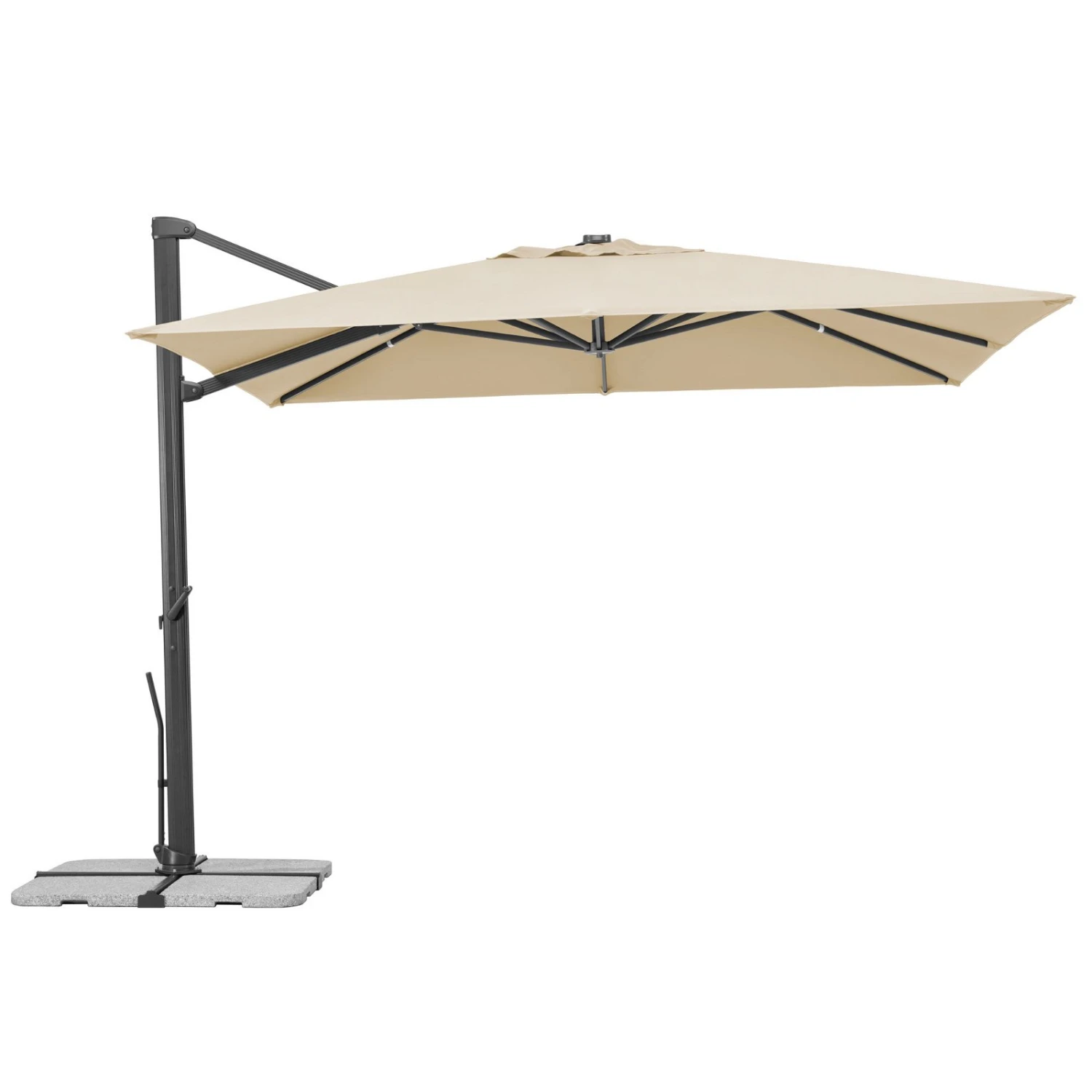 Dieser Pendelschirm überzeugt durch sein intelligentes Design und ist mit wenigen Handgriffen an den aktuellen Sonnenstand angepasst. Sie erhalten den Ampelschirm ‚Rhodos Smart‘ von Schneider Schirme inklusive eines praktischen Ständers, zusätzlich benötigen Sie Wegeplatten 50 x 50 cm. Der wasserabweisende, lichtechte Bezug lässt sich zur Reinigung problemlos abnehmen.