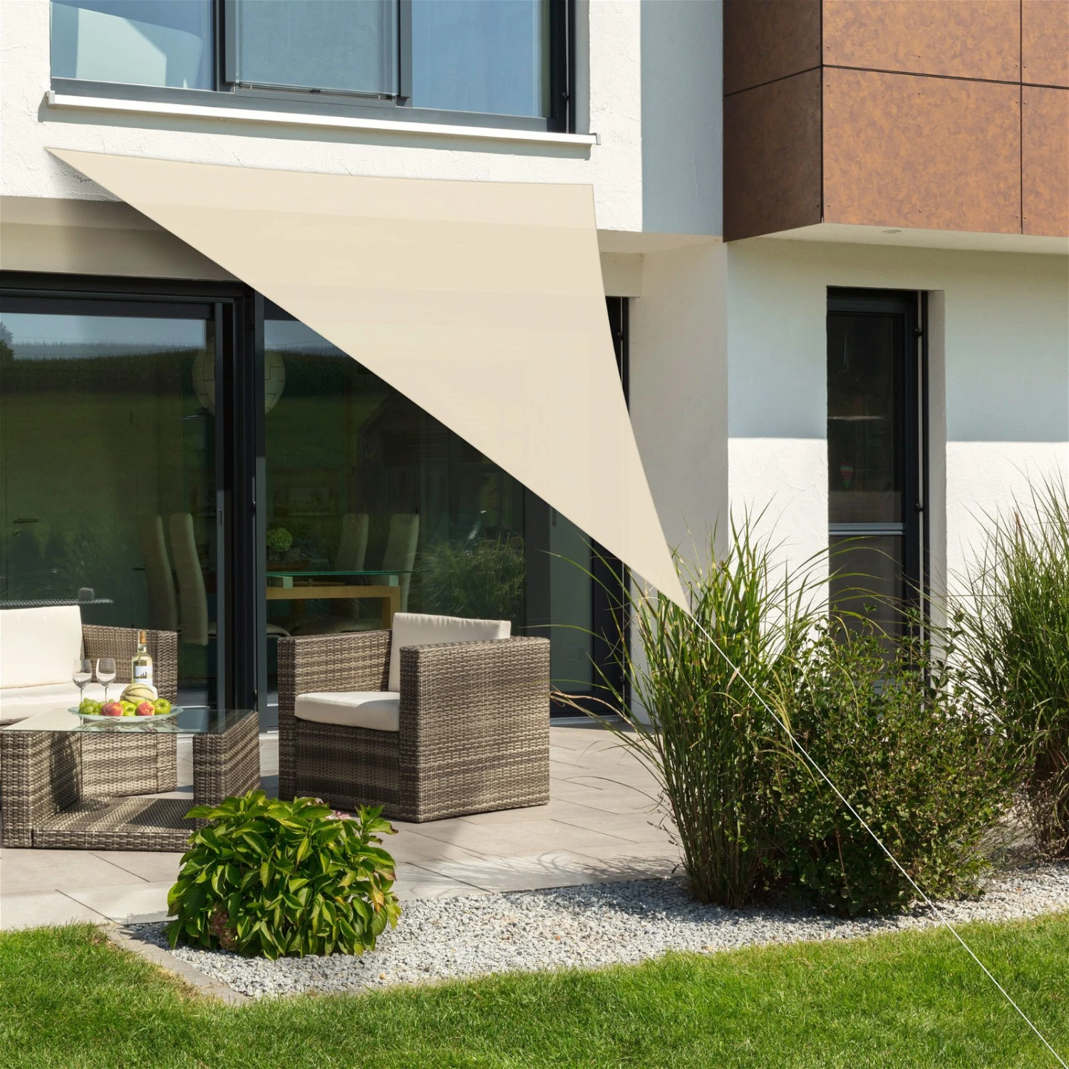 Das dreieckige Sonnensegel Lanzarote von Schneider Schirme lässt auf Ihrer Terrasse oder Ihrem Balkon eine schattige Oase entstehen. Sie erhalten dieses Sonnensegel inklusive passender Gummispanner, einem Befestigungsseils und Edelstahlösen. Dank eines strapazierfähigen Polyestergewebes hält das Sonnensegel rund 50 Prozent der schädlichen UV-Strahlung ab und ist außerdem wasserabweisend.