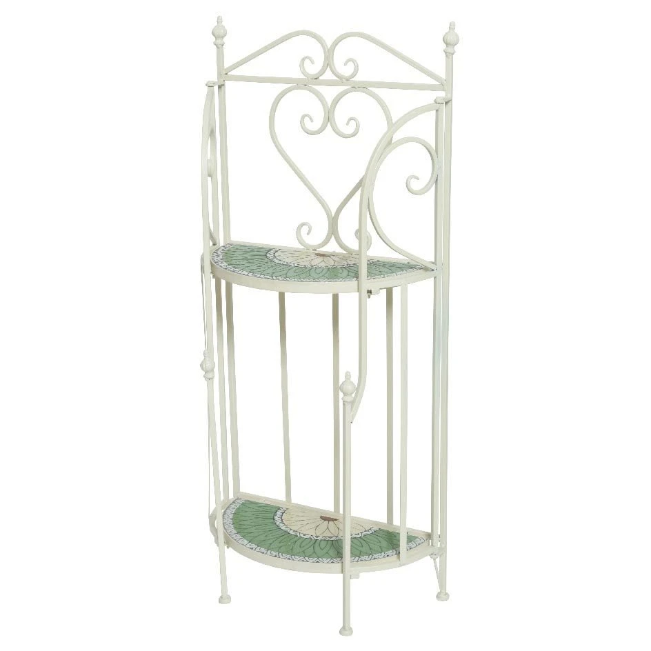 Das Wandregal ‚Vigo‘ wertet Ihr Einrichtungskonzept im Außenbereich mit einem dekorativen, mediterranen Blickfang auf. Dieses hochwertige Wandregal mit anspruchsvollem Blumenmosaik und einem elegant gebogenen Eisenrahmen bietet Ihnen eine willkommene Möglichkeit, Deko und Zierpflanzen gekonnt in Szene zu setzen.
